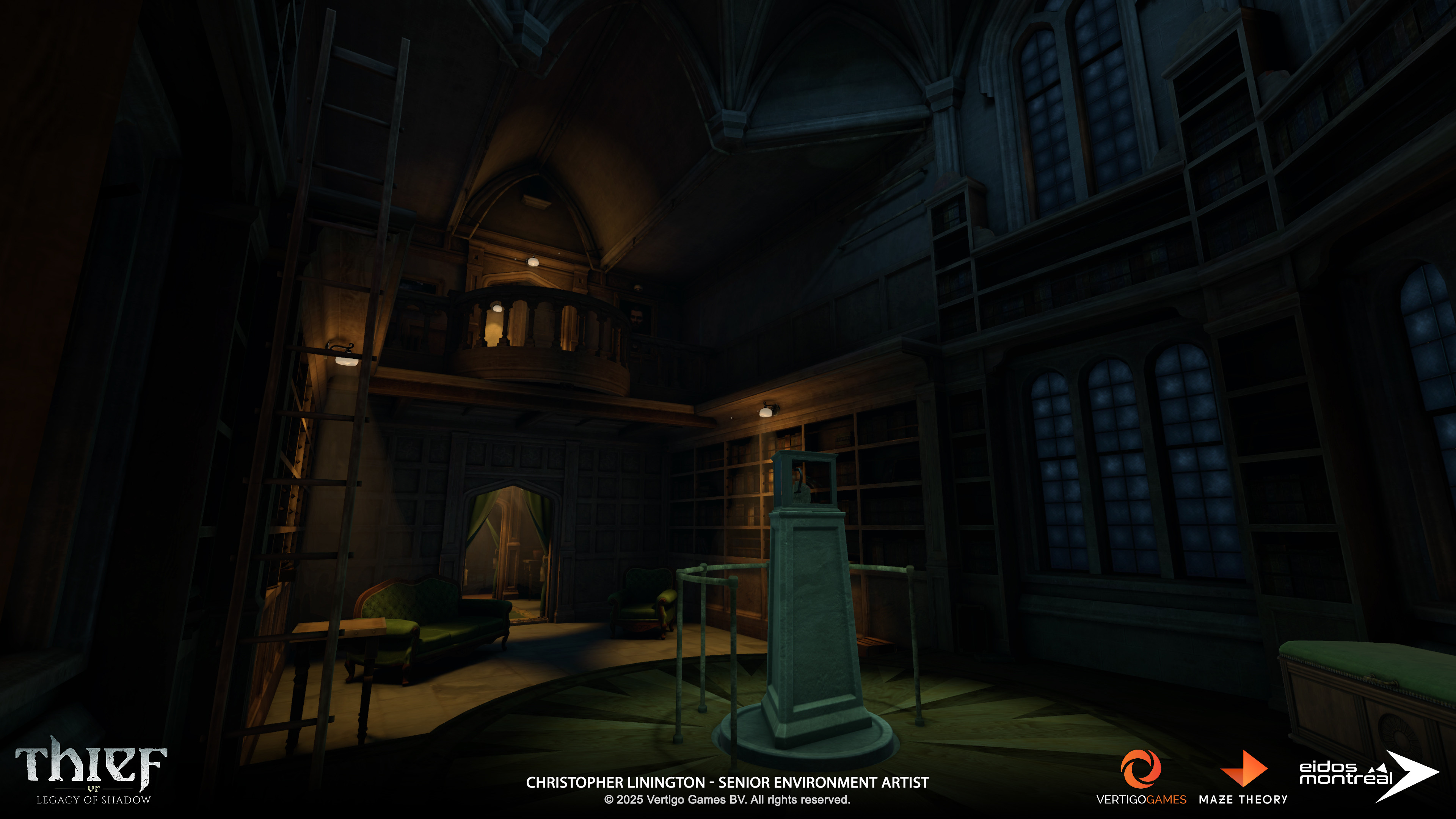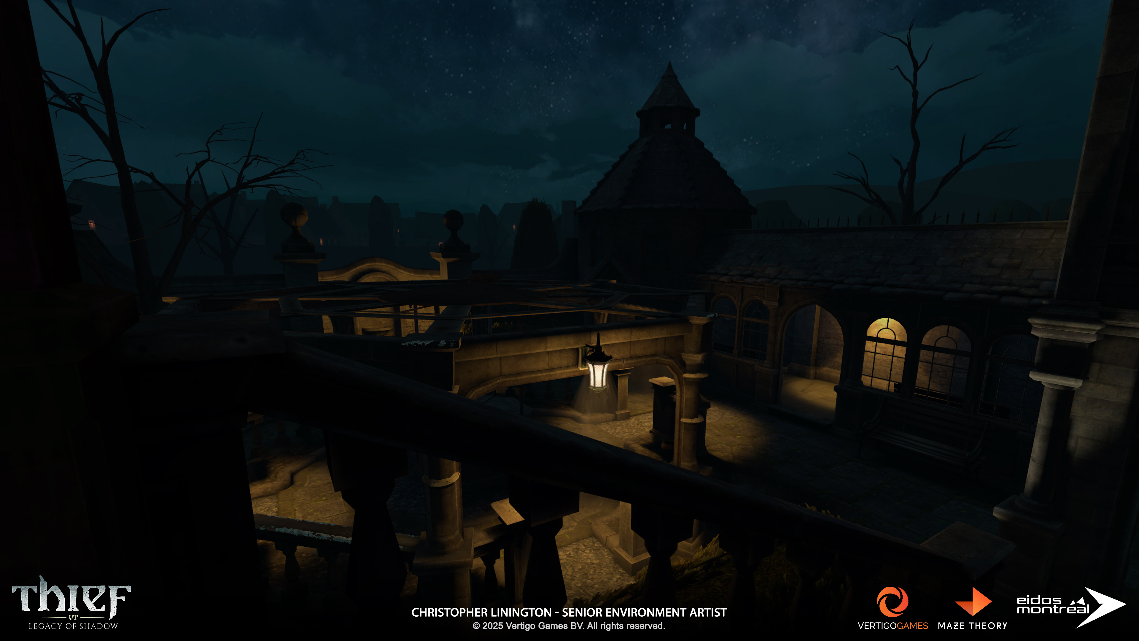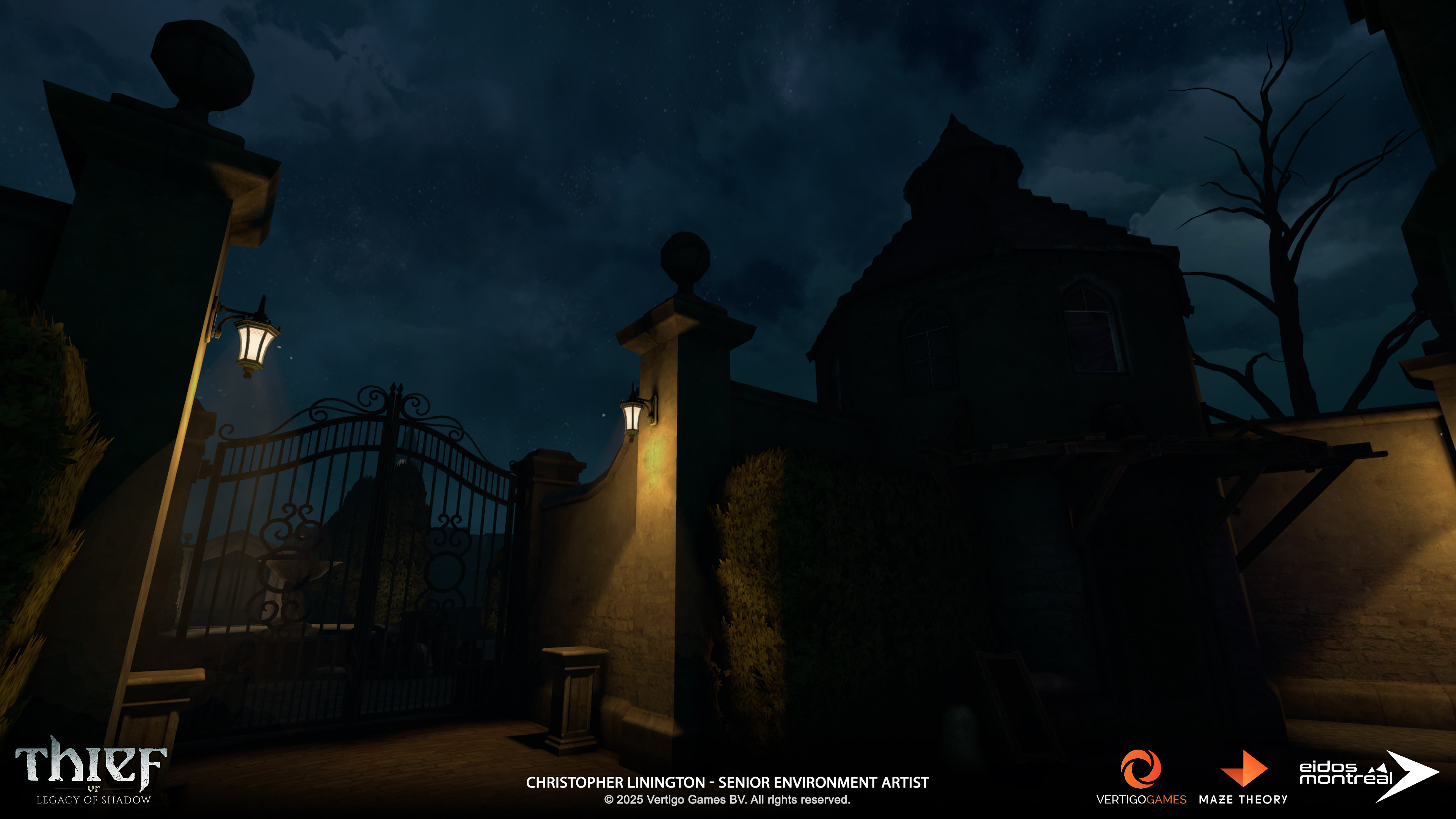 DESCRIPTION: Screenshots of the Ravencourt Manor environment from “Thief VR: Legacy of Shadow”. Captured in engine (Unity).