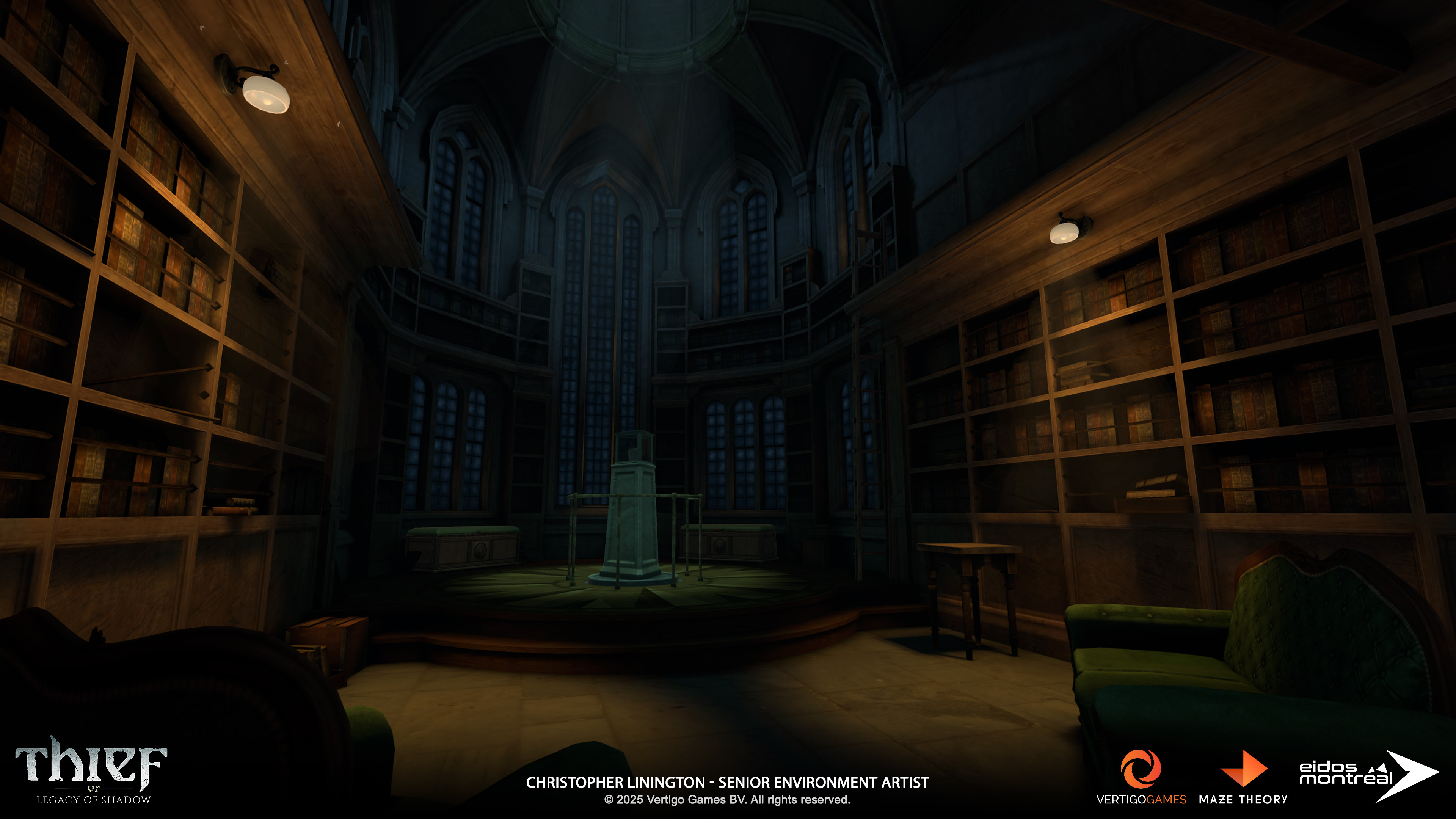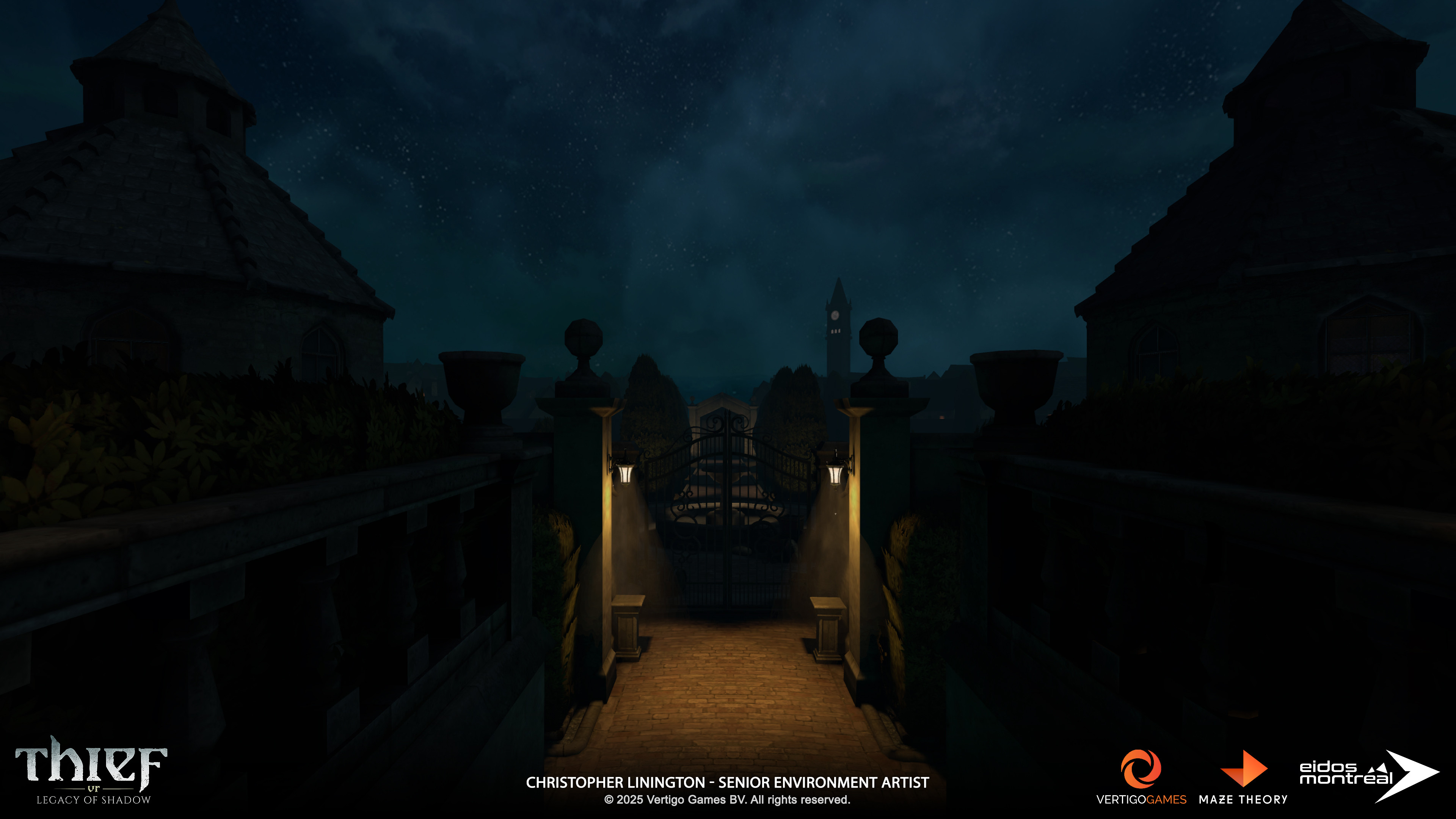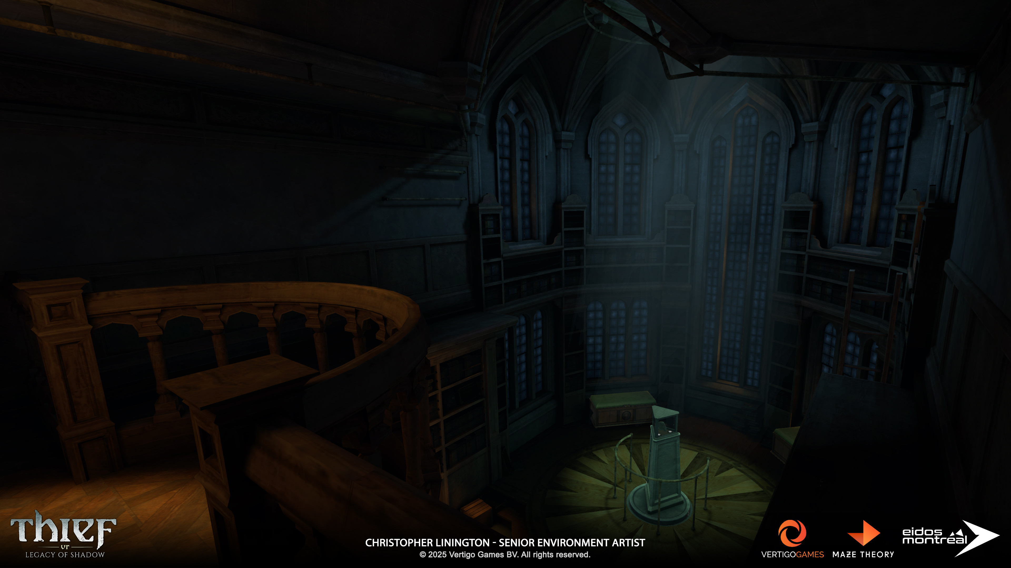 DESCRIPTION: Screenshots of the Ravencourt Manor environment from “Thief VR: Legacy of Shadow”. Captured in engine (Unity).